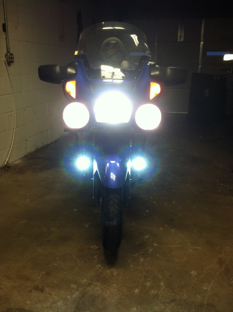 Mark sent these photos of his 2002 Kawasaki ZG1000 Concours fitted with BikeVis Cree v3 Running Lights fitted low on the front of the bike. Many thanks :)