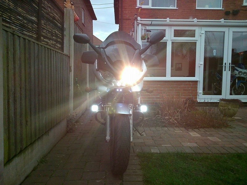 Lee has fitted some of our Cree Aux lights to his GSF1200F along with Bullets to great effect. He also appears to have a GSXR in his house, wish my wife would let me :)