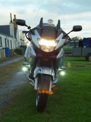 Sinclair sent this photo of his Honda Deauville 700 with our new BikeVis Cree Aux Lights fitted. Many thanks