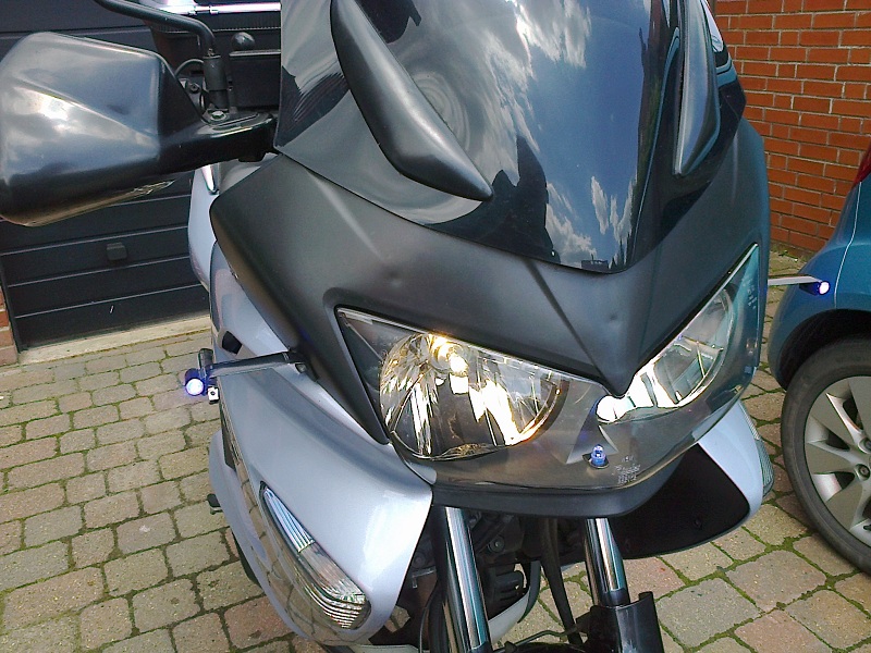 The front  LED's are mounted on aluminium section (slightly curved) which is nice and stable. sprayed black and mounted using the fairing bolts.