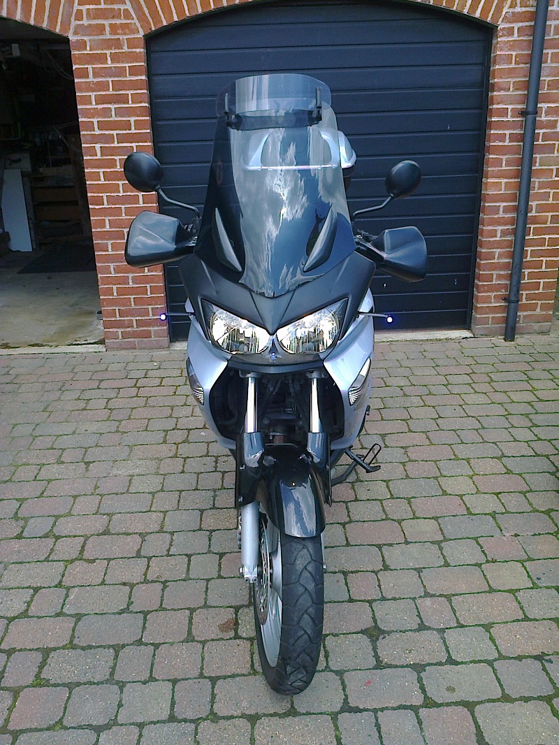 Bryan took time to send the following photos of his Honda Varadero with BikeVis Bullets installed. He took the time of making custom hangers to get the Bullets as wide as possible to great effect. As usual it's hard to capture just how bright they are with a camera...